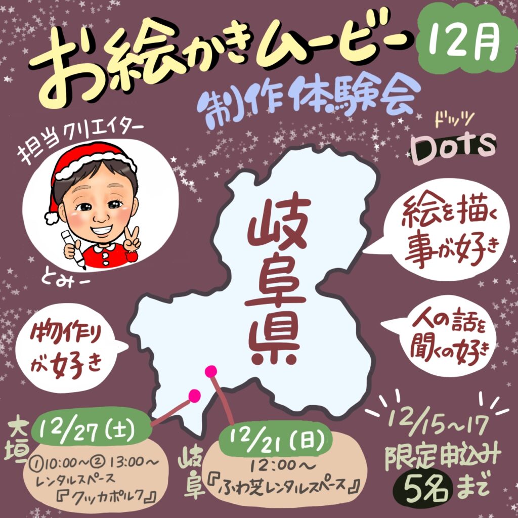 12月後半の「お絵かきムービー®︎」制作体験会Dotsの募集が始まりました